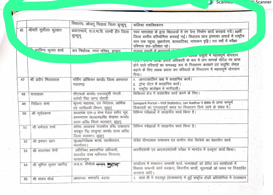 राजकीय उच्च माध्यमिक विद्यालय लंबी अहीर की प्रधानाचार्य सुशीला कुल्हार का नाम जिला स्तर की सम्मान सूची में शामिल होने के बाद क्षेत्र में तीखी प्रतिक्रिया सामने आई है। ग्रामीणों, अभिभावकों और खेल प्रेमियों ने इस चयन पर गंभीर आपत्ति जताते हुए इसे सम्मान की आत्मा के विपरीत बताया है।