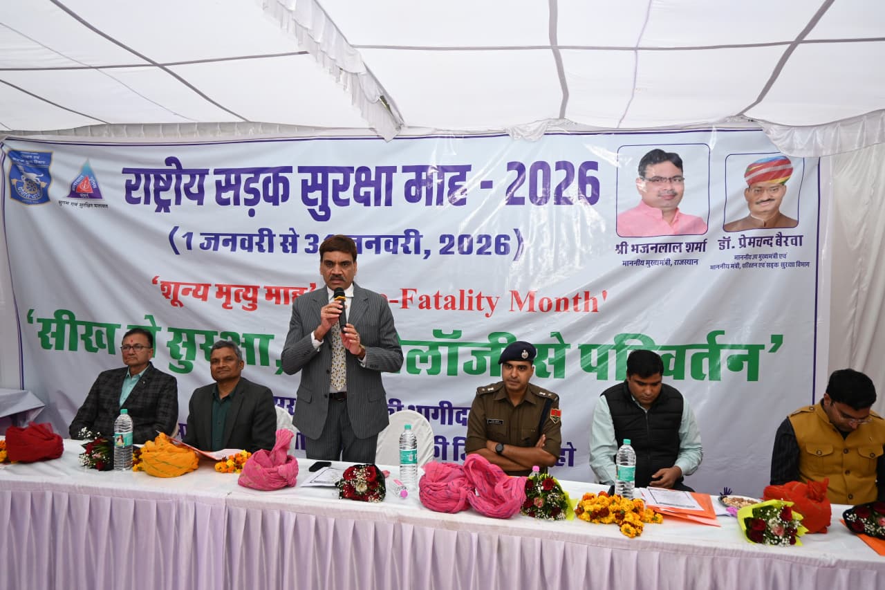 सीकर रोड स्थित परिवहन कार्यालय परिसर में गुरुवार को सड़क सुरक्षा माह का विधिवत शुभारंभ किया गया। कार्यक्रम की अध्यक्षता पुलिस अधीक्षक बृजेश ज्योति उपाध्याय ने की, जबकि मुख्य अतिथि जिला कलेक्टर डॉ. अरुण गर्ग रहे।