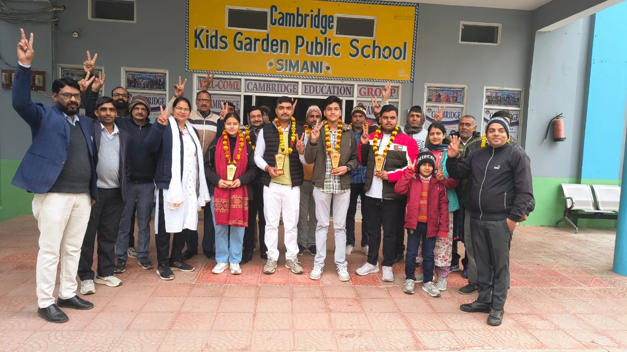 तथा कुशल अग्रवाल पुत्र रमेश अग्रवाल निवासी सिंघाना ने सफलता प्राप्त कर विद्यालय की उपलब्धियों की सूची में एक और स्वर्णिम अध्याय जोड़ा। विद्यार्थियों की इस ऐतिहासिक सफलता के उपलक्ष्य में विद्यालय प्रांगण में स्वागत एवं सम्मान समारोह का आयोजन किया गया। समारोह में विद्यार्थियों को पुष्पगुच्छ एवं सम्मान प्रतीक प्रदान कर उनका उत्साहवर्धन किया गया। इस अवसर पर कैंब्रिज शिक्षा समूह के निदेशक रहीश यादव ने सभी सफल विद्यार्थियों को बधाई देते हुए कहा कि कैंब्रिज शिक्षा समूह का उद्देश्य विद्यार्थियों को उत्तम, गुणवत्तापूर्ण और व्यवहारिक शिक्षा प्रदान करना है। उन्होंने कहा कि हमारे विद्यार्थी आज शिक्षा के विभिन्न क्षेत्रों में अपनी विशिष्ट पहचान बना रहे हैं। यह उपलब्धि अनुभवी शिक्षकों की मेहनत, विद्यार्थियों की लगन और अभिभावकों के विश्वास का संयुक्त परिणाम है। संस्थान सदैव विद्यार्थियों के सर्वांगीण विकास के लिए प्रतिबद्ध रहेगा। विद्यालय के प्रधानाचार्य रवीन्द्र जांगिड़ ने भी विद्यार्थियों को शुभकामनाएं देते हुए कहा कि यह सफलता अन्य विद्यार्थियों के लिए प्रेरणास्रोत बनेगी। उन्होंने कहा कि कठिन परिश्रम, अनुशासन और शिक्षकों के सही मार्गदर्शन से किसी भी लक्ष्य को प्राप्त किया जा सकता है। वहीं कैंब्रिज शिक्षा समूह के चेयरमैन हरिकृष्ण यादव ने भी सभी सफल विद्यार्थियों को इस स्वर्णिम सफलता पर बधाई दी और उनके उज्ज्वल भविष्य की कामना की। इस दौरान उपस्थित अभिभावकों ने भी अपने बच्चों की सफलता पर गर्व व्यक्त करते हुए विद्यालय प्रबंधन एवं समस्त शिक्षकों का आभार प्रकट किया। समारोह में विद्यालय का समस्त स्टाफ मौजूद रहा और सभी ने विद्यार्थियों की उपलब्धि को ऐतिहासिक बताते हुए उनके उज्ज्वल भविष्य की शुभकामनाएं दीं।